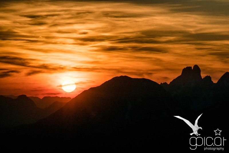Es wird Abend über Rohrmoos und Untertal - im Hintergrund das Dachsteinmassiv.